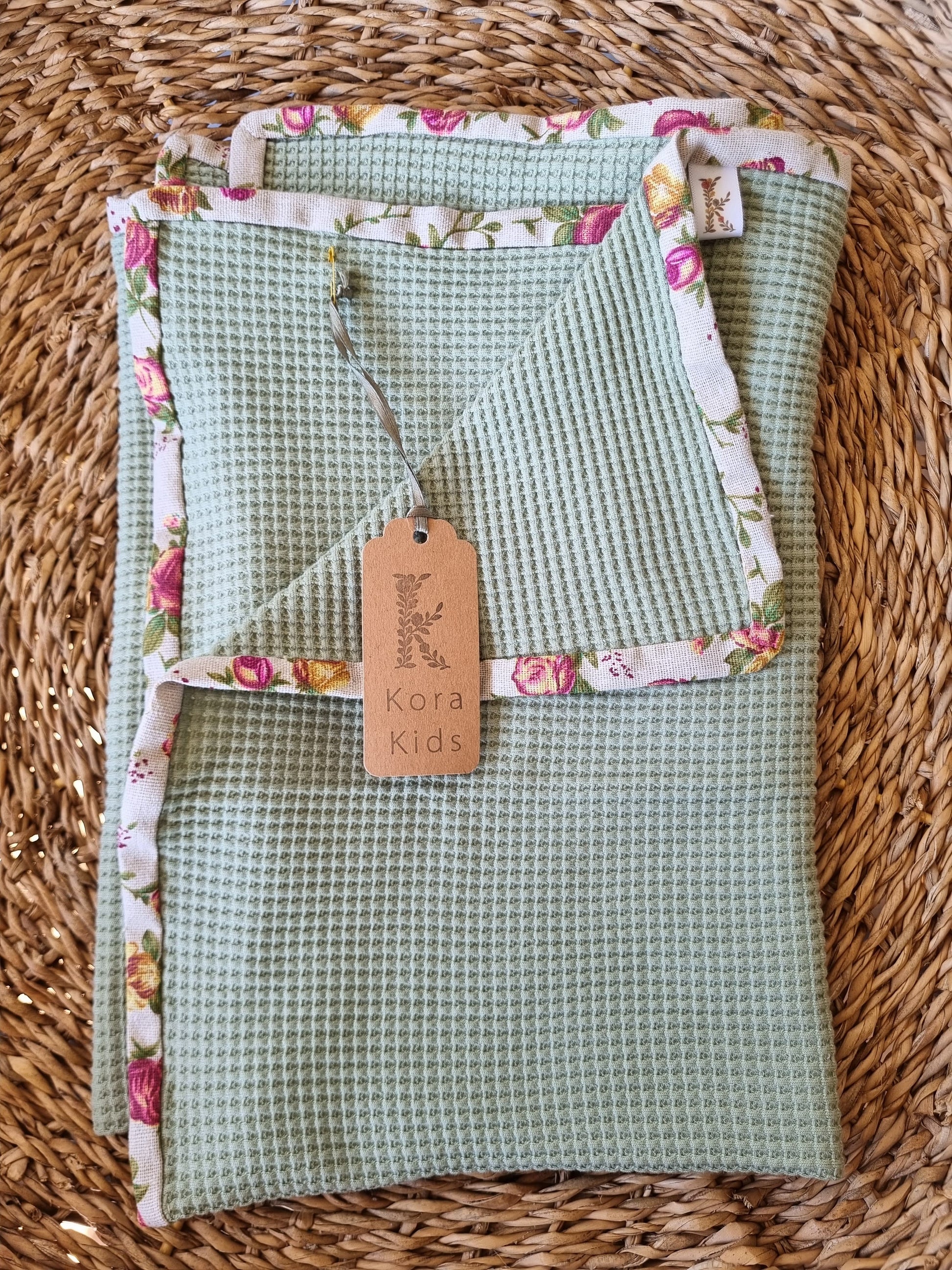 Manta de tela waffle, 100% de algodón (300 hilos) con aplicación de cinta.