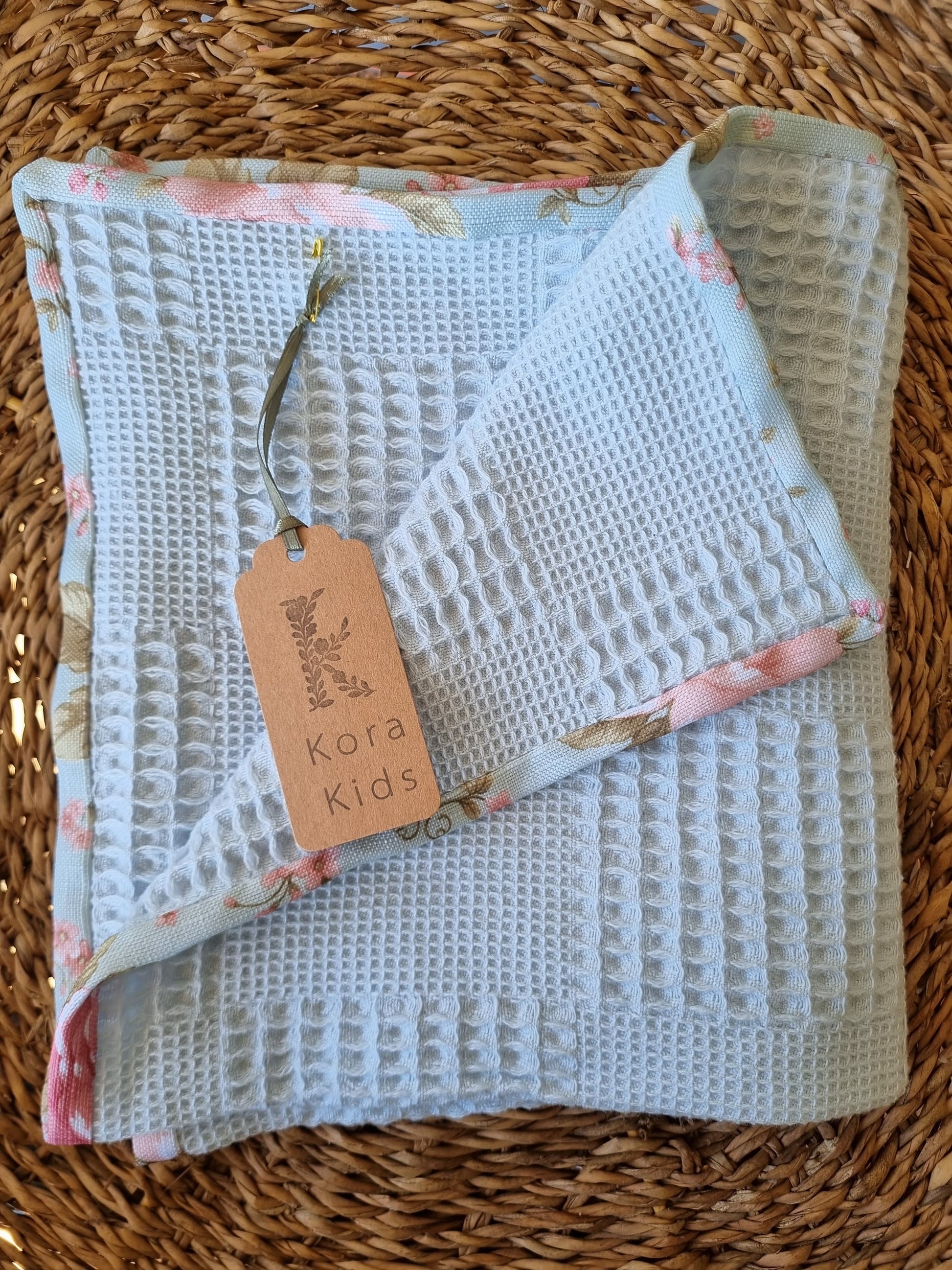 Manta de tela waffle, 100% de algodón (300 hilos) con aplicación de cinta.