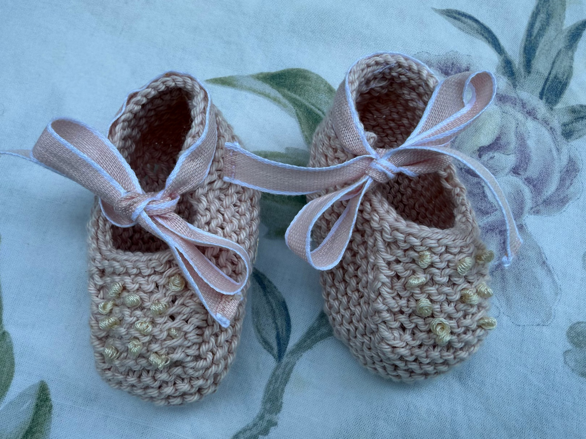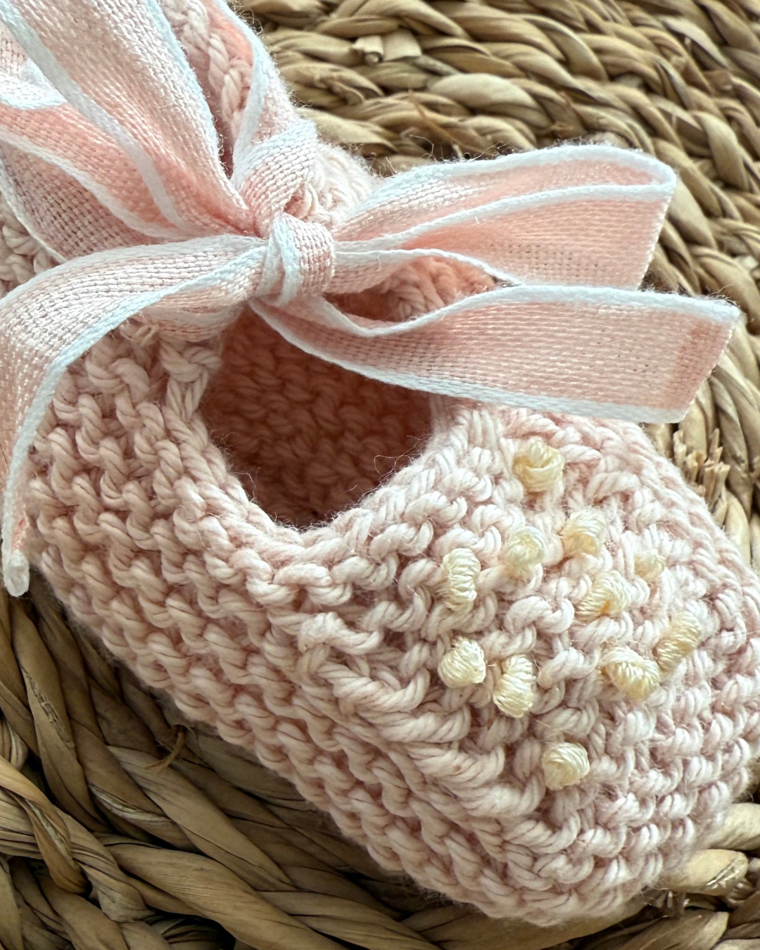 Patuco 100% de algodón (reciclado e hipoalergénico), tejido y bordado a mano.