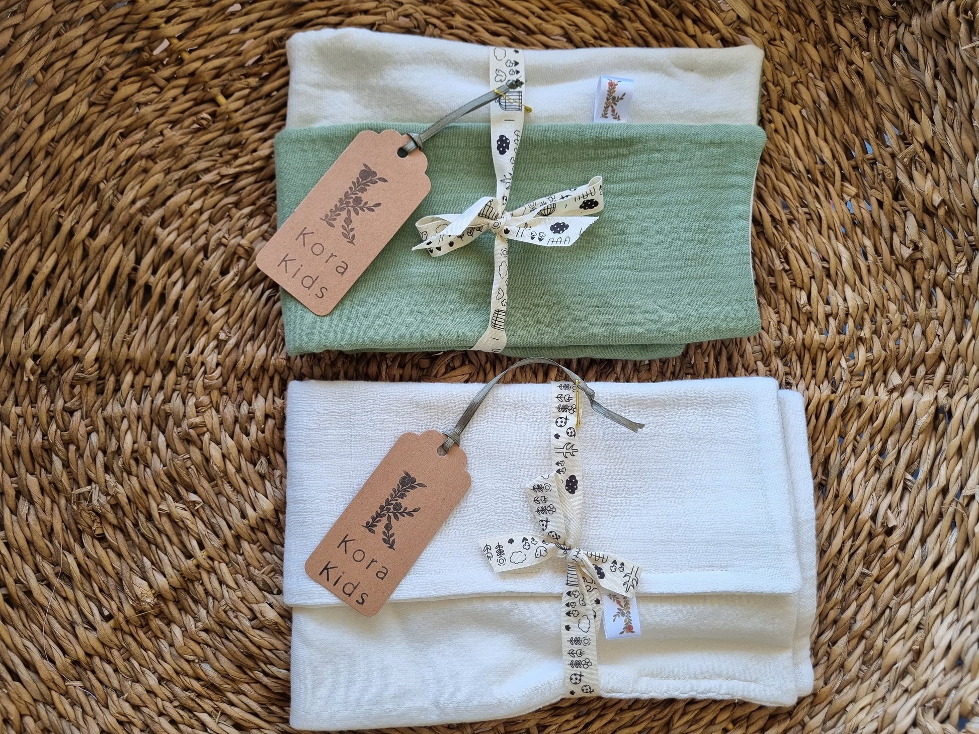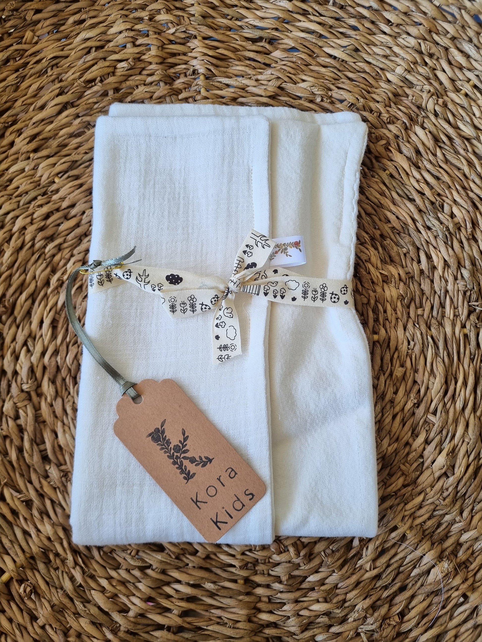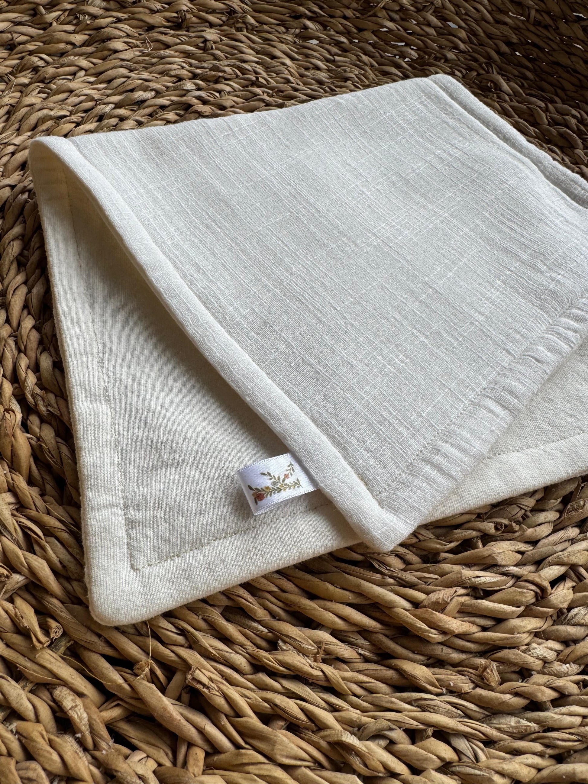 Tuto rectangular (43 x 25 cm) de muselina y franela, 100% de algodón peruano. Hecho a mano en Chile.